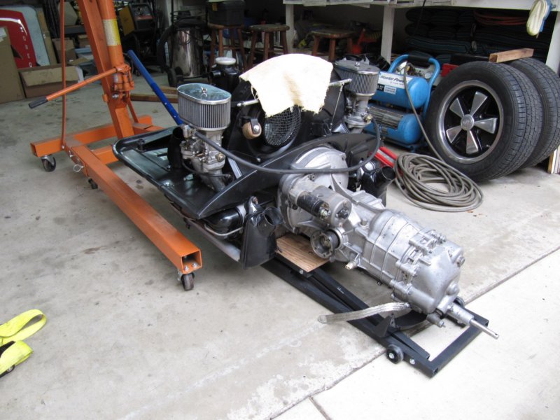 Time to put the engine back in! I lowered it onto the modified truck with the jack under the platform.